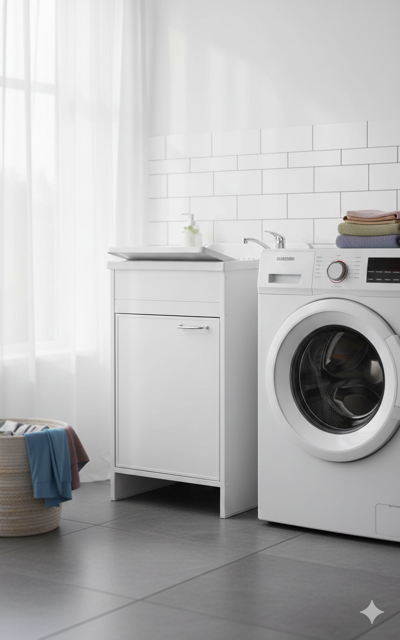 Mobile Lavanderia da Esterno 46,5x49x84 cm in PVC Bianco