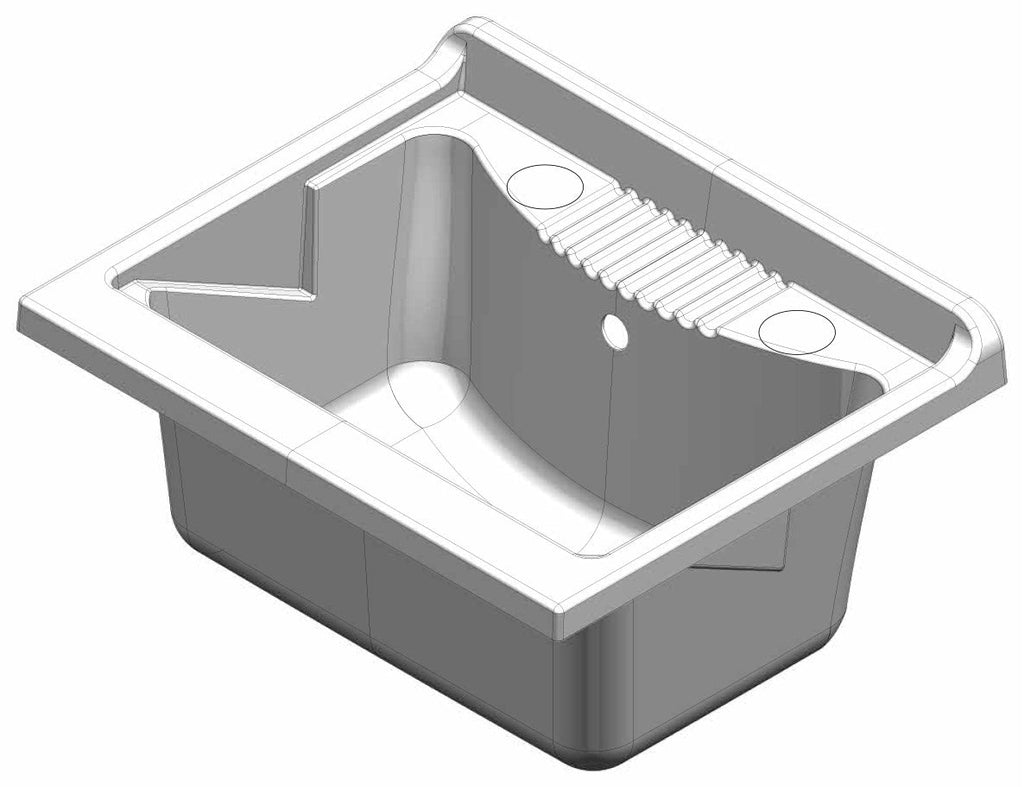 Complet avec planche de lavage en résine et siphon autonettoyant avec mécanisme de trop-plein.