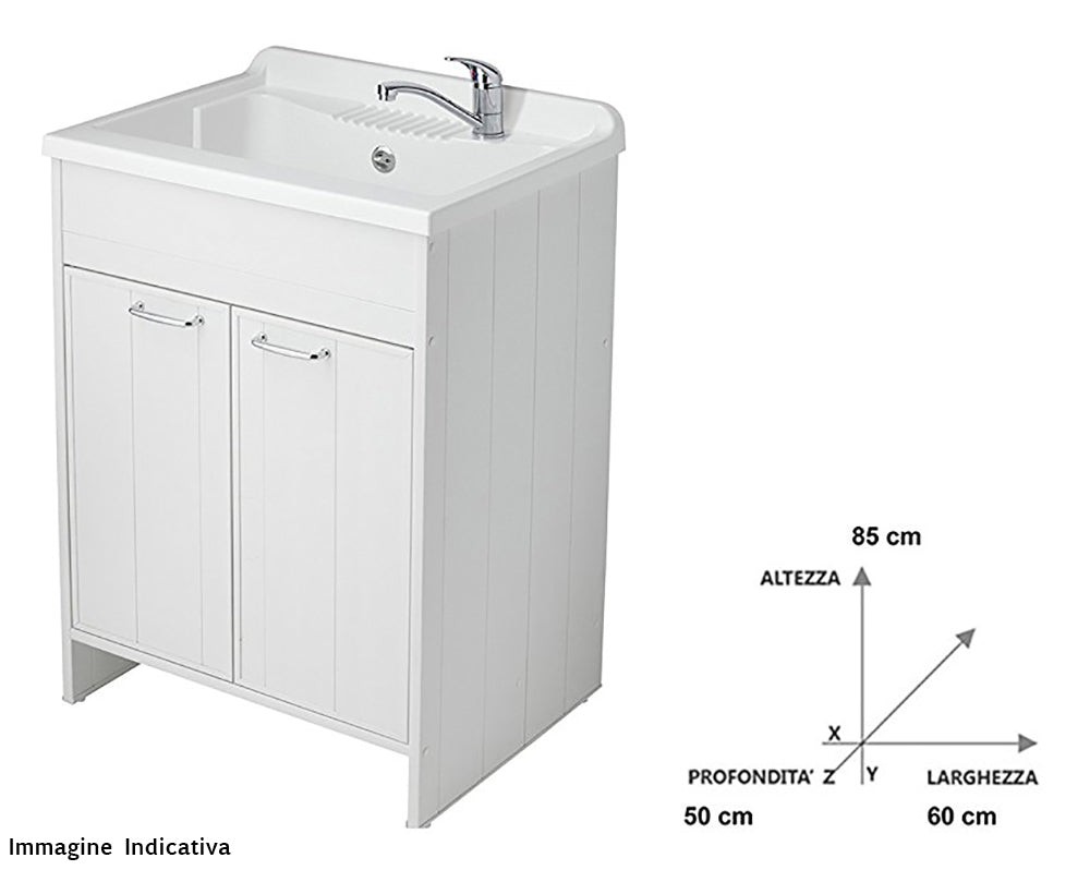 Meuble lavabo PVC 60x50x85cm 2 portes avec planche à laver Forlani Washouse Ash