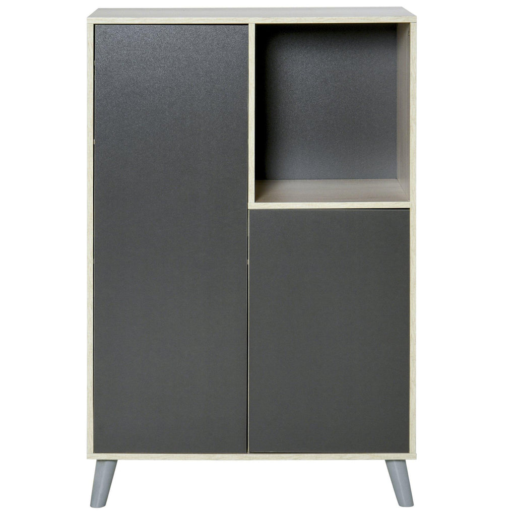 Bibliothèque gris foncé avec 2 portes et compartiment ouvert 80x40x120 cm