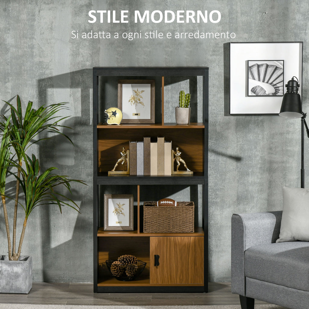 Mobile Libreria 4 Livelli Aperti con Armadietto 76.5x30x150 cm in Truciolato e MDF Marrone e Nero
