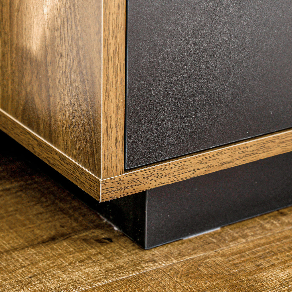 - STILE MODERNO: Il nostro mobile basso presenta una resa d'impatto legno marrone, completata da eleganti cassetti neri. Non esitare e rinnova i tuoi ambienti interni con questo complemento d'arredo in grado di unire perfettamente il design contemporaneo con la praticità
