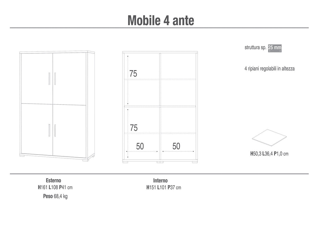Mobile Multiuso 4 Ante 108x161x41 cm Ossido Bianco/Noce Stelvio