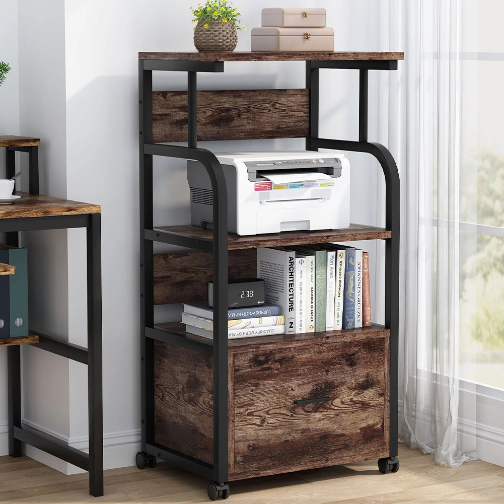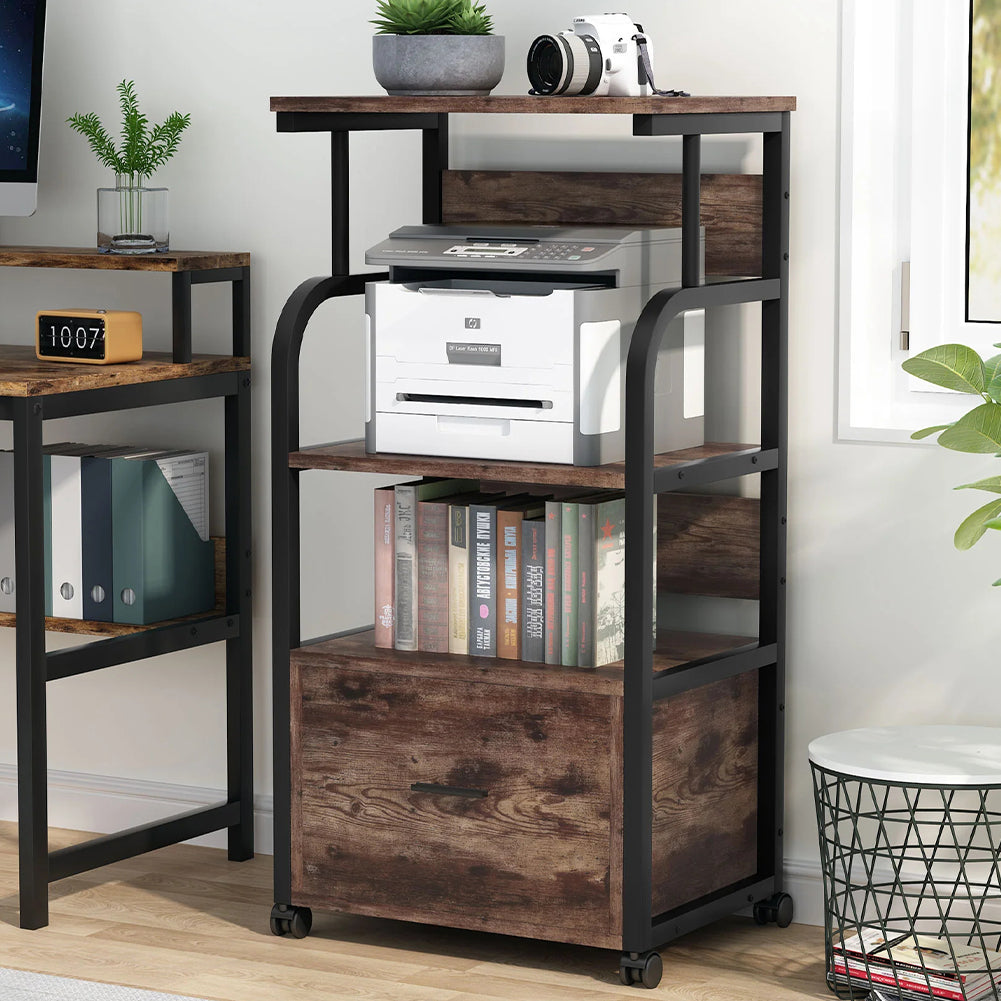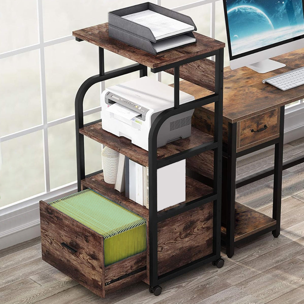 Mobile Multiuso per Stampante 3 Ripiani e 1 Cassetto 53x40x106 cm in MDF e Metallo