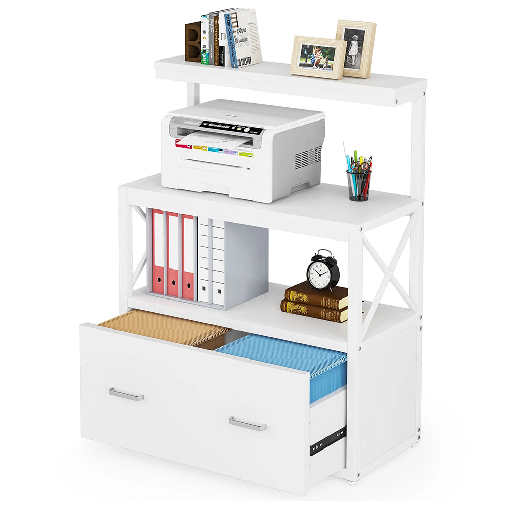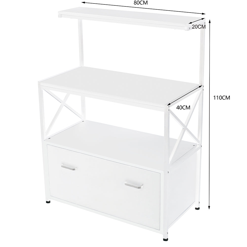 Mobile Multiuso per Stampante 3 Ripiani e 1 Cassetto 80x40x110 cm in MDF Bianco