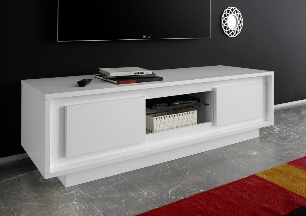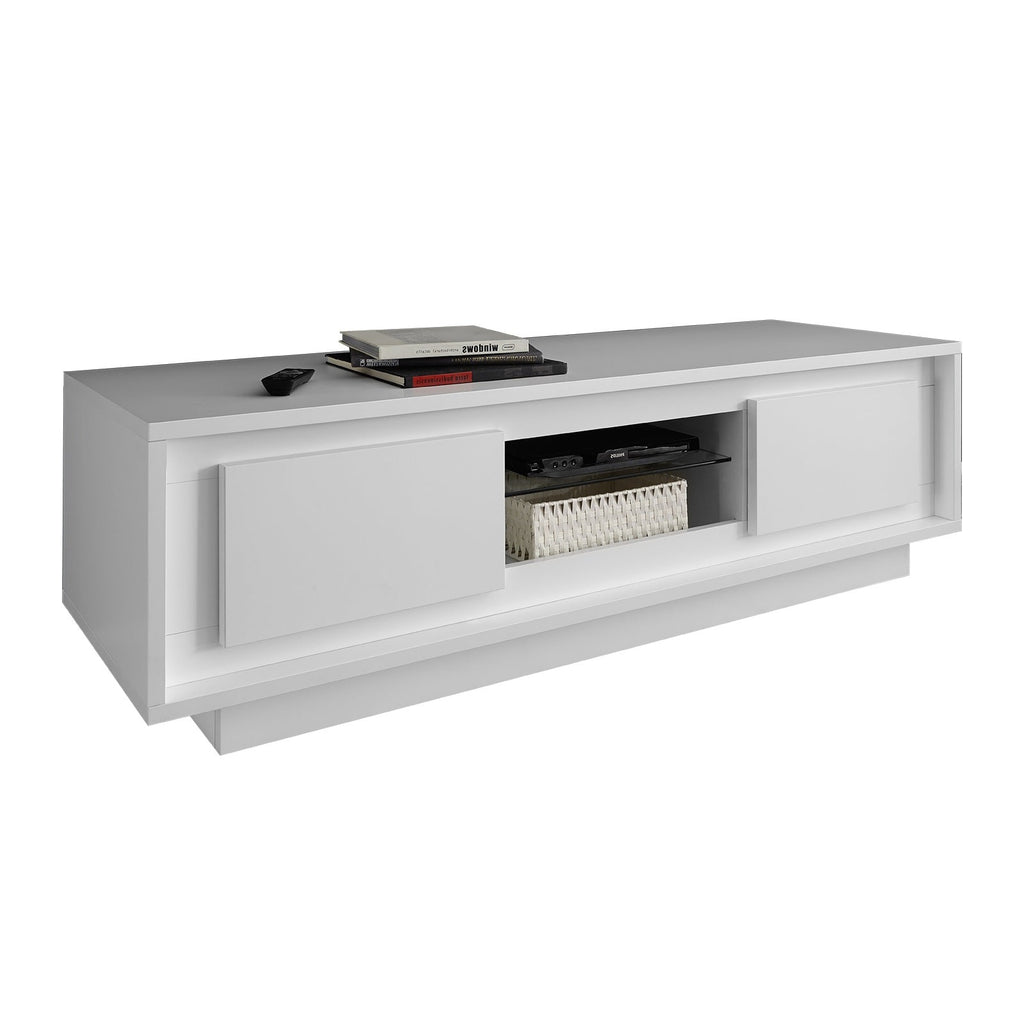Meuble TV 2 Portes 156x50x45 cm en Bois TFT Blanc Mat