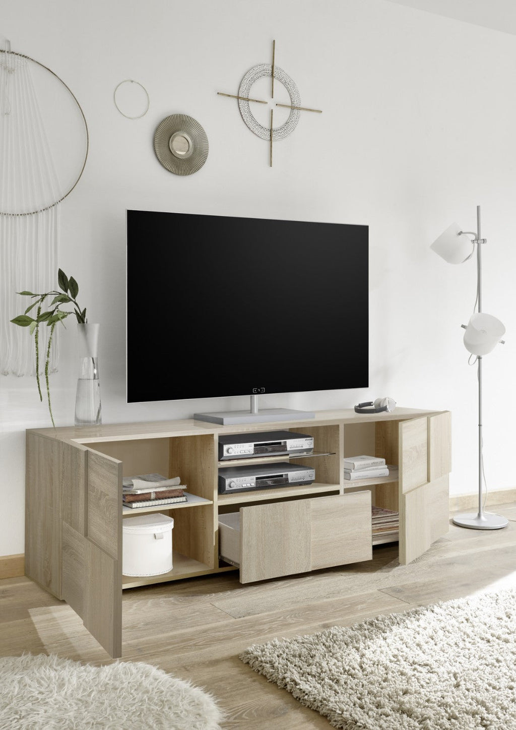 Meuble TV 2 portes 180x42x57 cm en chêne Samoa TFT Checkers Wood