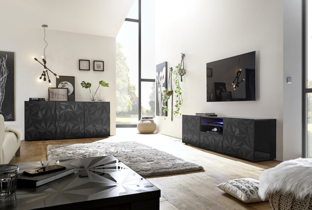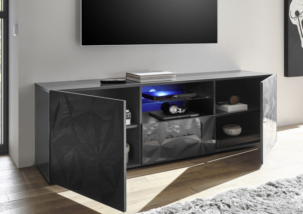 Meuble TV 2 portes 180x42x57 cm en bois TFT Praga Anthracite