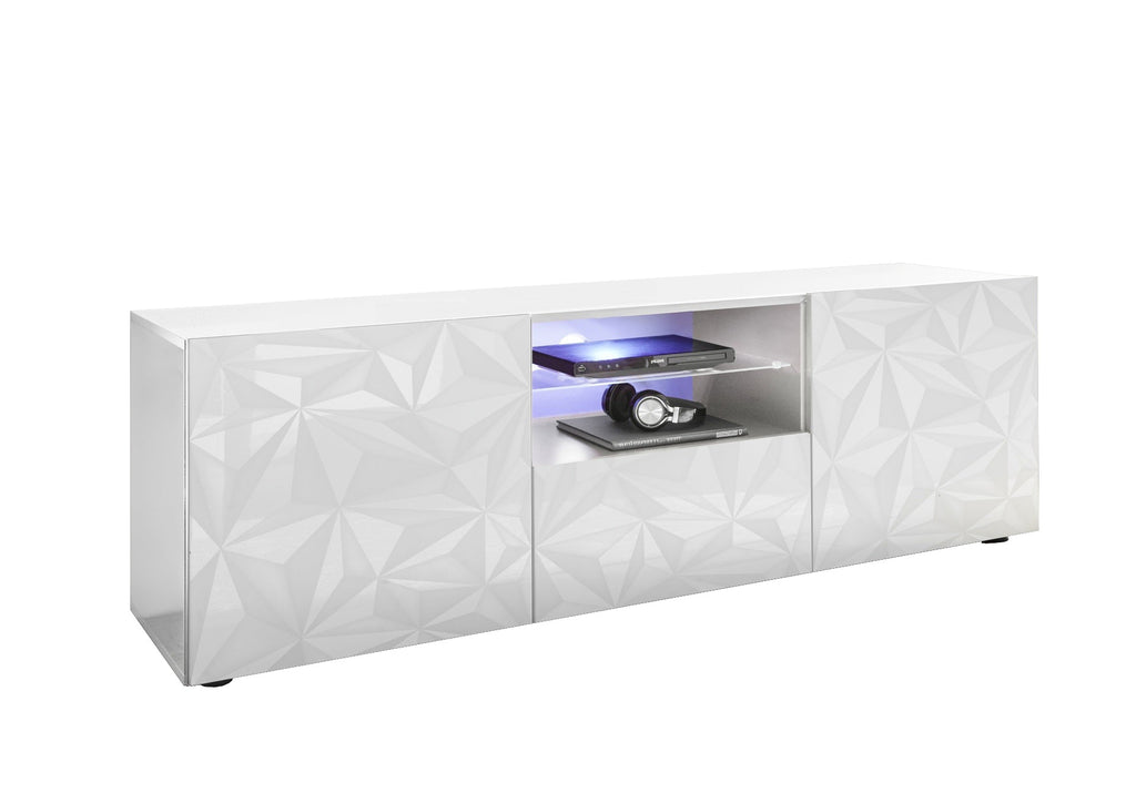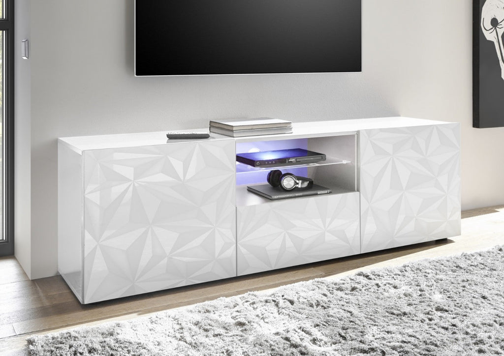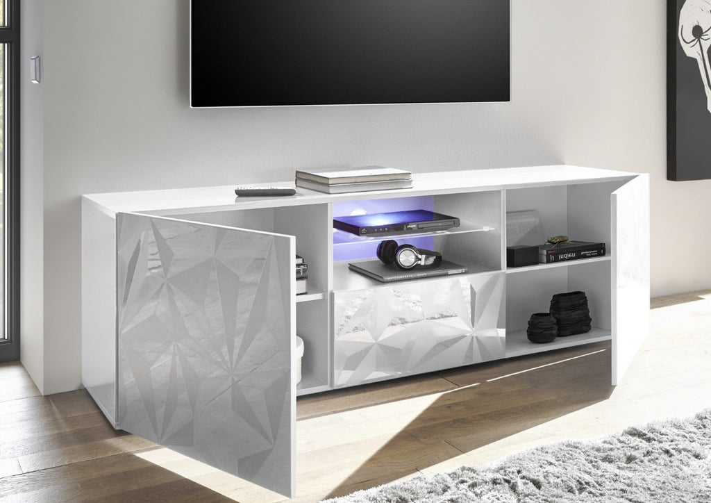 Meuble TV 2 portes 180x42x57 cm en bois TFT Prague blanc brillant