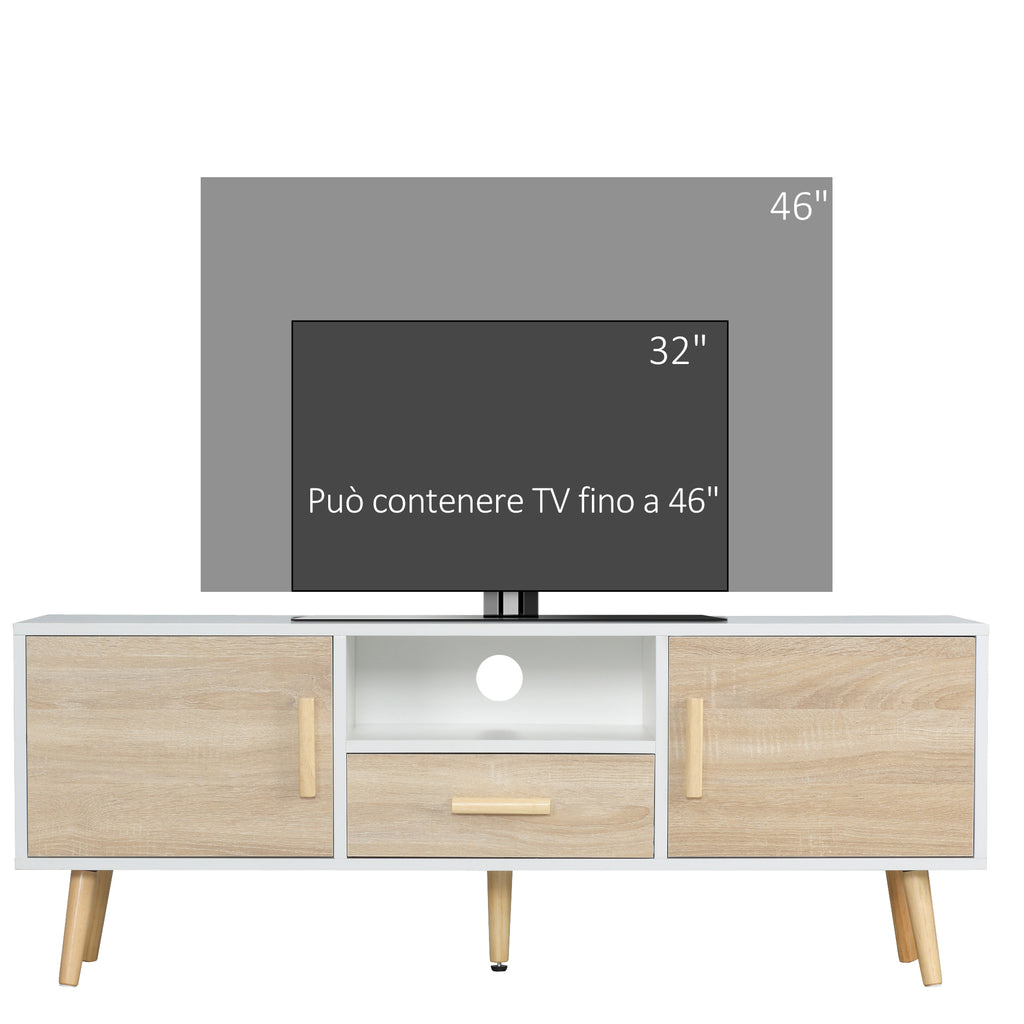 Meuble TV bas max 46" 140x40x55,3 cm avec étagère à tiroirs et 2 meubles en bois aggloméré et pin