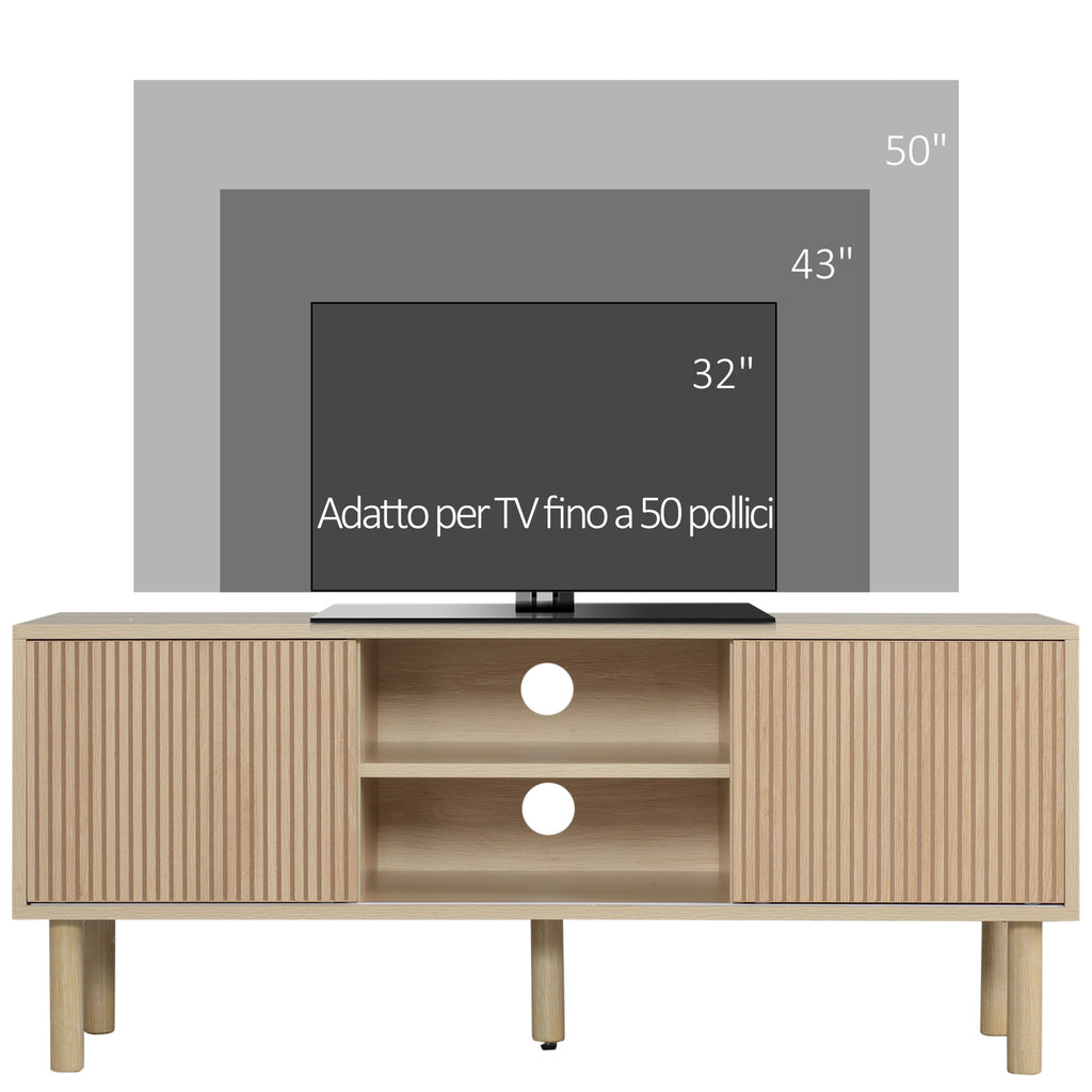 Meuble TV jusqu'à 50" Porte Coulissante 115x40x49 cm avec Compartiments Ouverts et Armoires Naturel