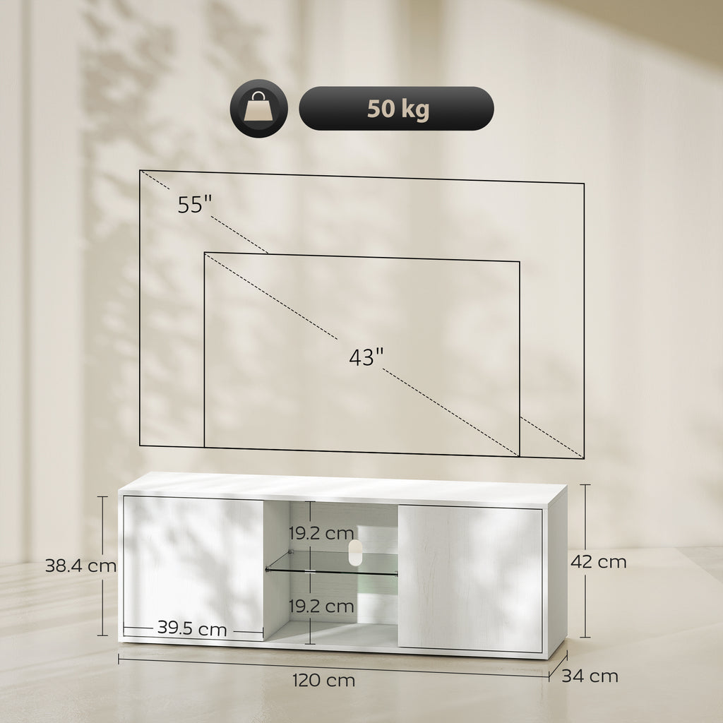 • STILE MODERNO: Questo mobile TV sospeso di 120 cm di larghezza è perfetto per televisori da 43 a 55 pollici, unendo il bianco brillante all'effetto legno caldo per creare un punto focale rilassante e di stile per le tue serate in casa