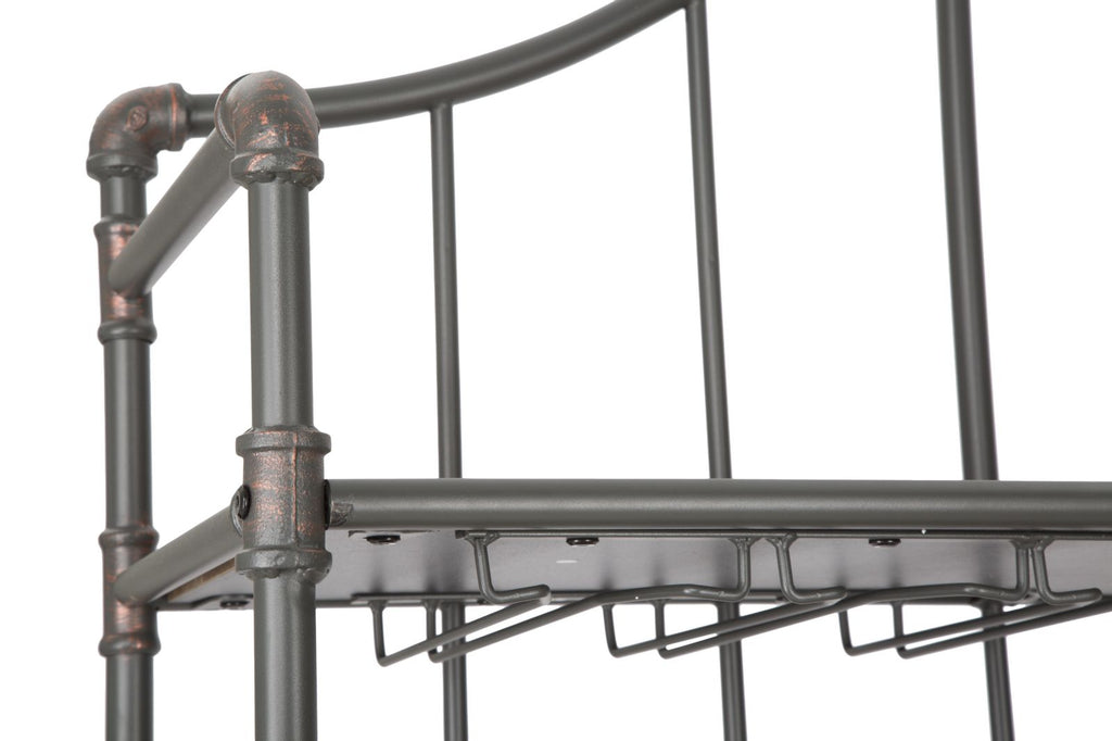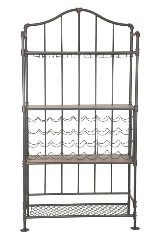 Armoire avec porte-bouteilles et porte-verres en métal et mdf. De splendides accessoires industriels qui s'intègrent facilement dans votre salon ou espace commercial. Le bois et le fer s'expriment dans leur forme la plus moderne