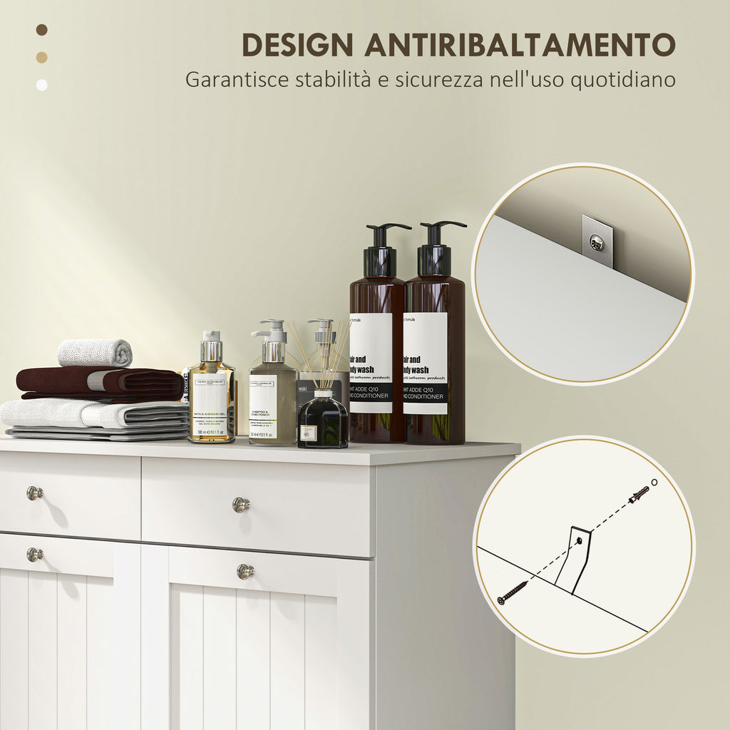 Mobile Portabiancheria da Bagno 78x38x90 cm con 2 Ceste Rimovibili Cassetti e Ante a Ribalta Bianco