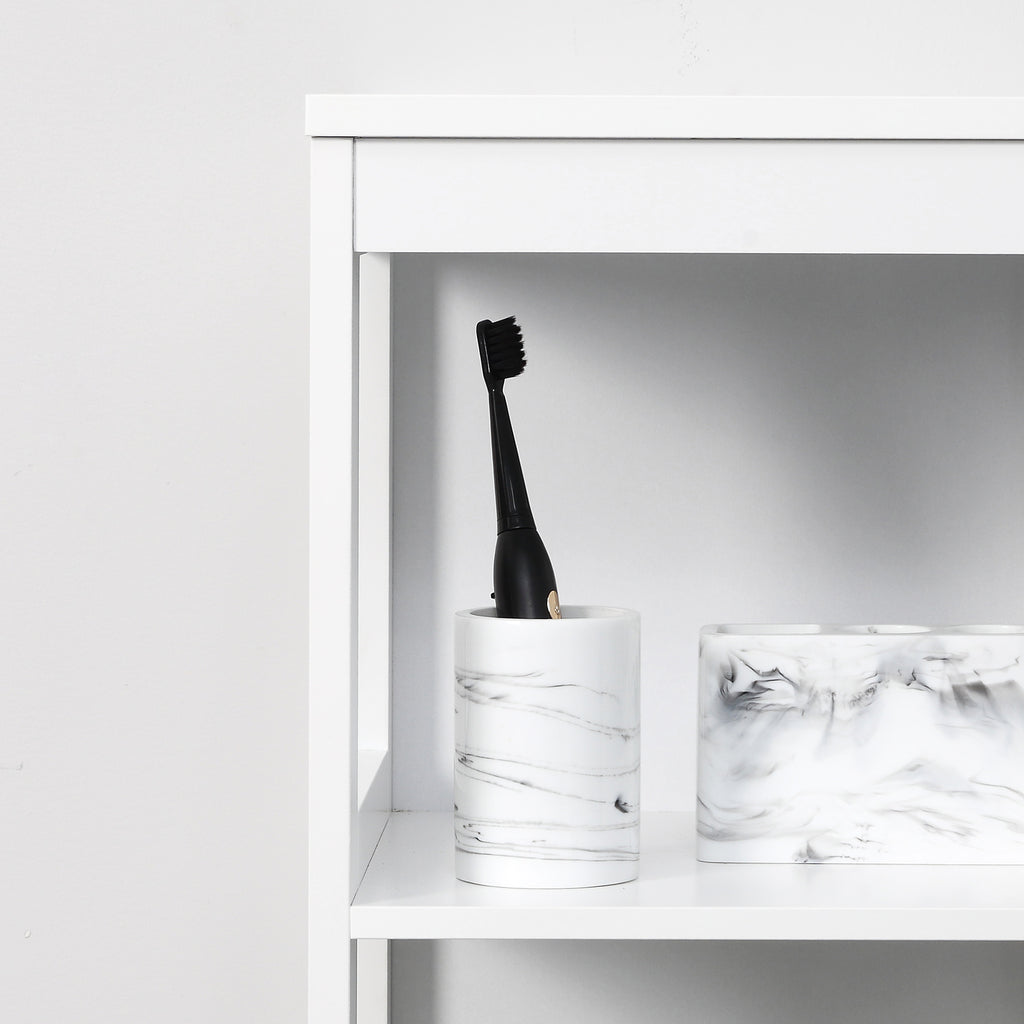 Agrandissez vos espaces, même les plus petits, avec ce meuble de salle de bain ! La structure en MDF est robuste et résistante à l'usage et vous offre suffisamment d'espace pour garder chaque produit en ordre. Les lignes minimalistes rendent cette étagère de salle de bain parfaite à utiliser même dans le salon, la chambre et autres petits espaces. Le dispositif anti-basculement évite les risques de chute et la surface peinte est facile à nettoyer. Il est temps de tirer le meilleur parti de votre espace !
