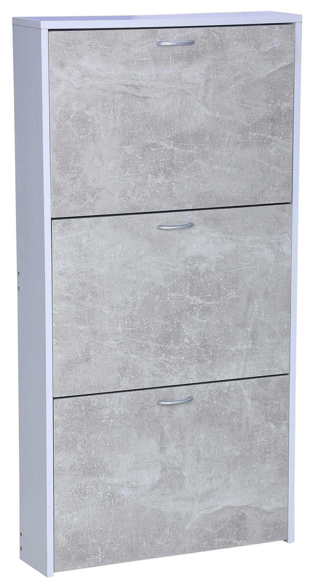 Meuble à Chaussures 3 Portes 60x14,5x116 cm en Aggloméré Blanc et Ciment