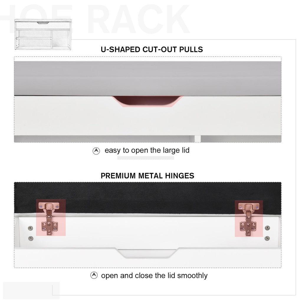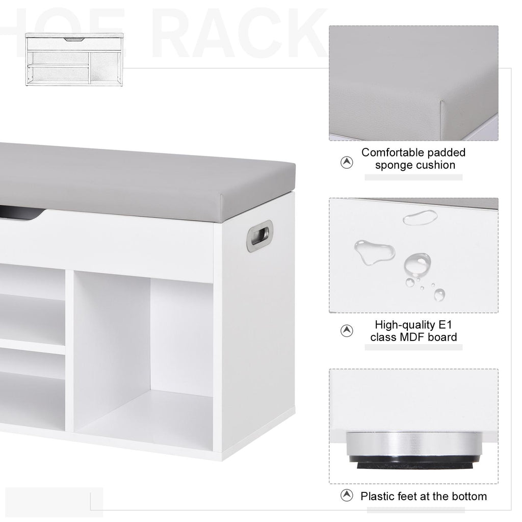 - PRATIQUE ET CONFORTABLE : Ce meuble à chaussures est doté d'une assise en mousse rembourrée, idéale pour s'asseoir lorsque l'on se déchausse, qui cache un récipient.