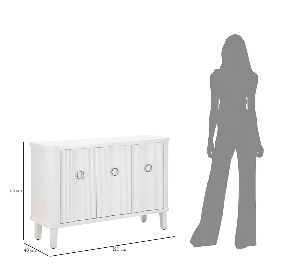Questo mobile in legno bianco è caratterizzato da un design elegante e minimalista. Con i suoi tre sportelli, offre ampio spazio di archiviazione. La lavorazione semplice, pur essendo di alto livello, dona al mobile un aspetto pulito e raffinato. Le linee essenziali conferiscono un tocco di modernità e si adattano perfettamente a qualsiasi stile di arredamento.