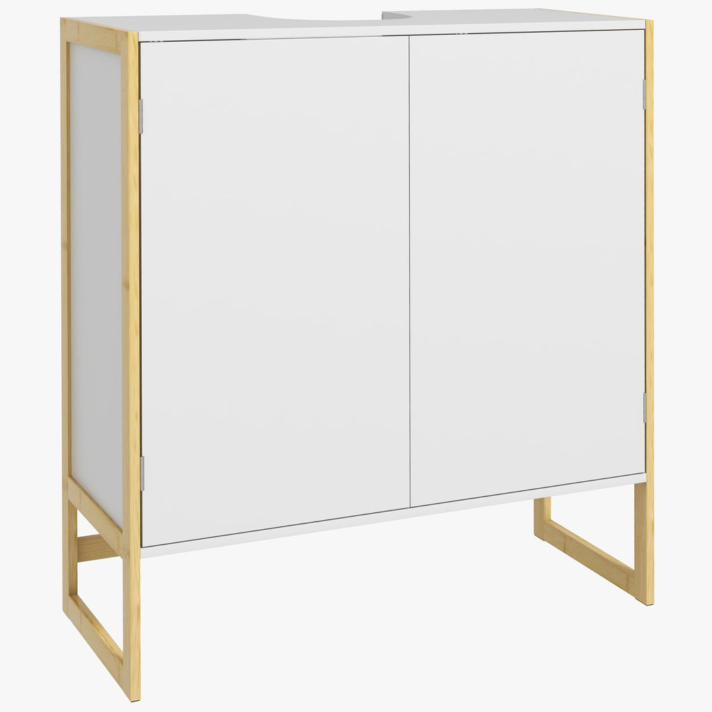 Mobile Sottolavabo da Bagno con Armadietto 2 Ante a Pressione 70x33x79,5cm in Bambù e MDF con Intaglio a U Bianco