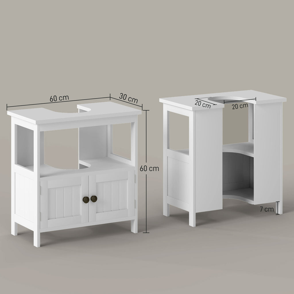 Mobile Sottolavabo Intaglio a U 60x30x60 cm Ripiano Aperto e Armadietto in MDF Bianco