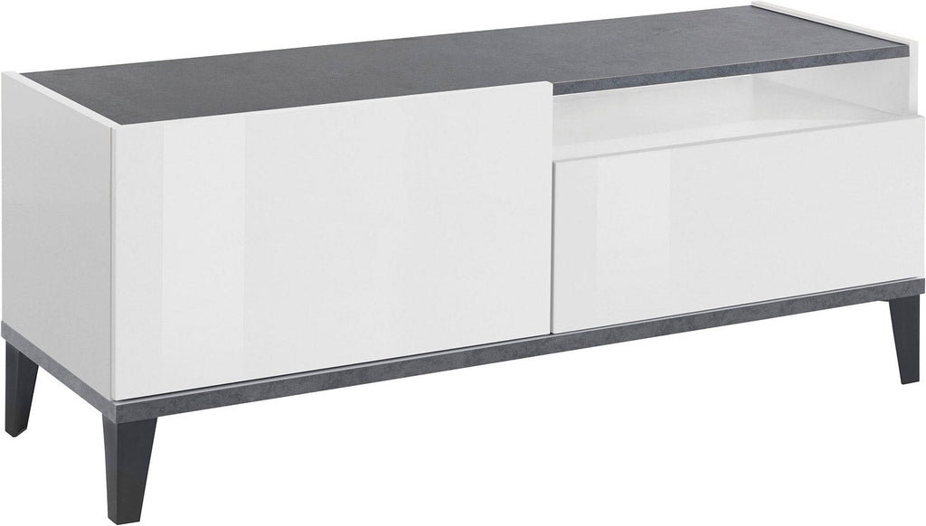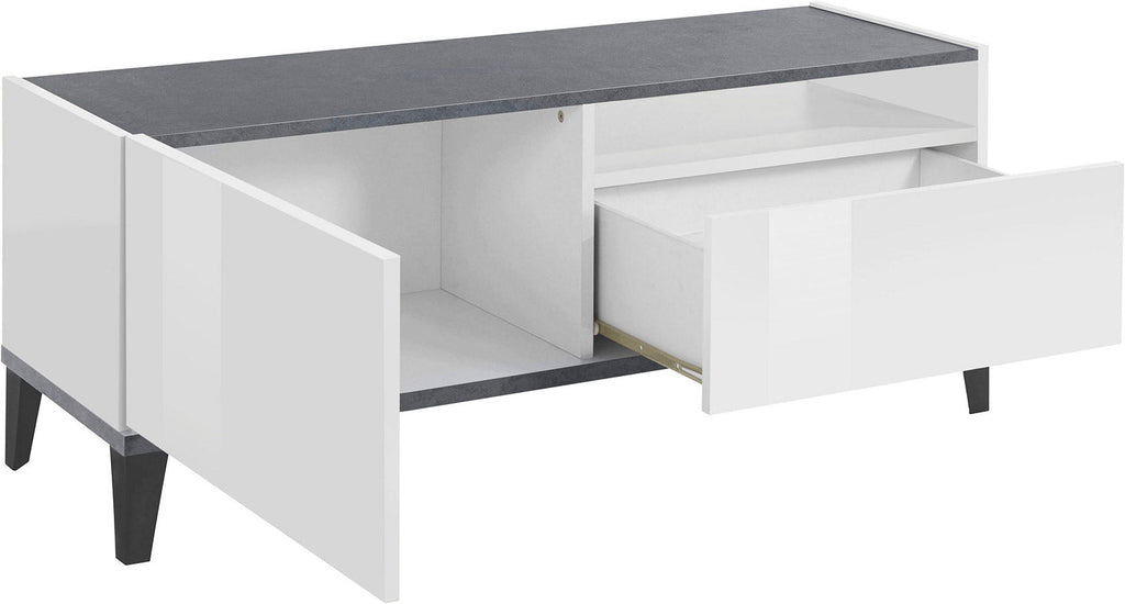 Mobile TV 1 Anta 1 Cassetto 120x40x47 cm Sunrise Bianco Lucido e Ardesia