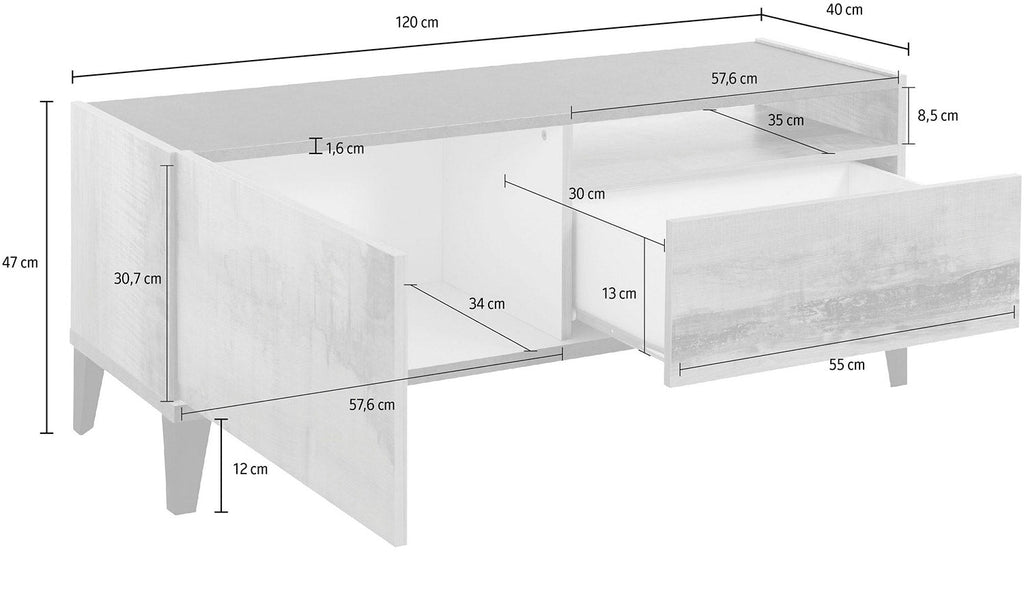 - Dimensioni del mobile montato: 120 x 40 x 47 (LxPxA)