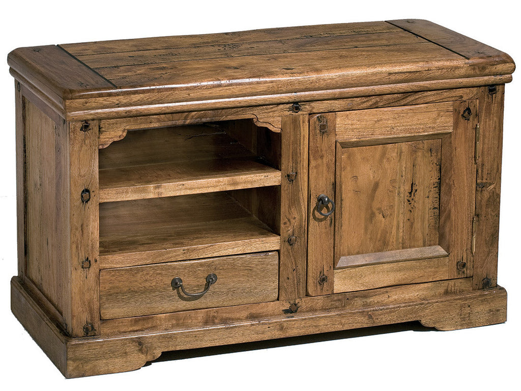 Meuble TV 1 porte 1 tiroir 2 étagères en bois antique clair