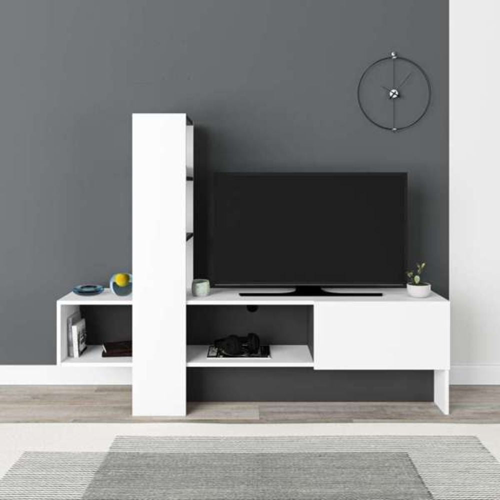 Meuble TV 1 porte 180x38x138 cm en MDF Troya Blanc et Anthracite