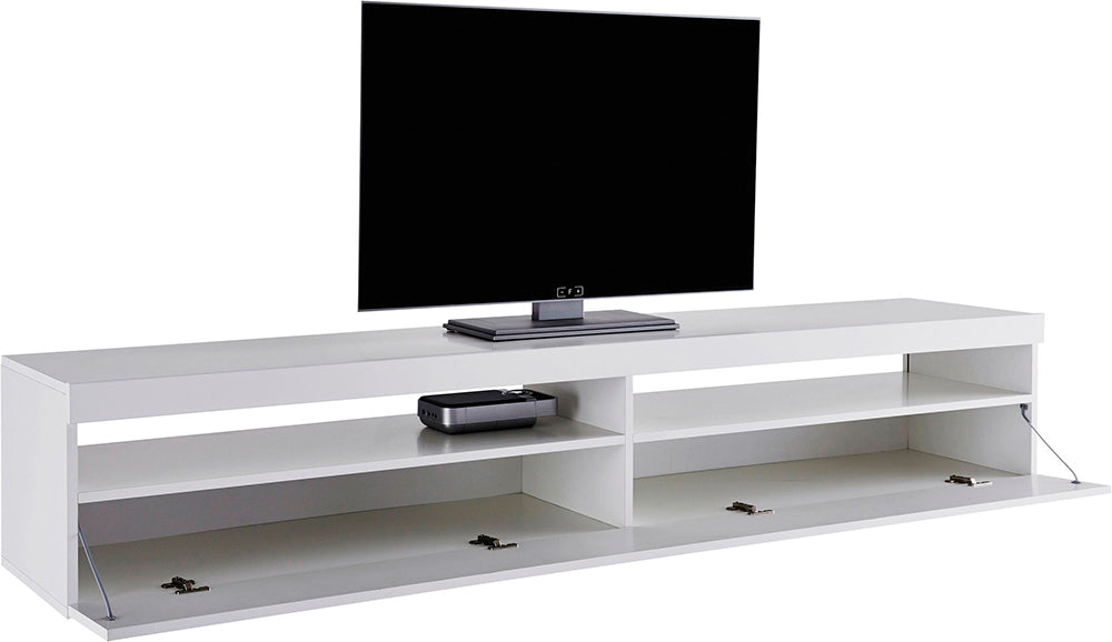 Il porta tv BURRATA da 200 cm offre un ampio e solido ripiano d’appoggio, che può accogliere una tv di grandi dimensioni e vari oggetti decorativi per allestire l’angolo living. Dal punto di vista degli spazi di archiviazione, il prodotto è dotato di due ampi vani a giorno per tutte le apparecchiature elettroni che a servizio della tv. Al di sotto è presente un'anta a ribalta per tutta la lunghezza del mobile che cela due spazi contenitivi sufficientemente grandi per riporre oggettistica varia a seconda delle esigenze.