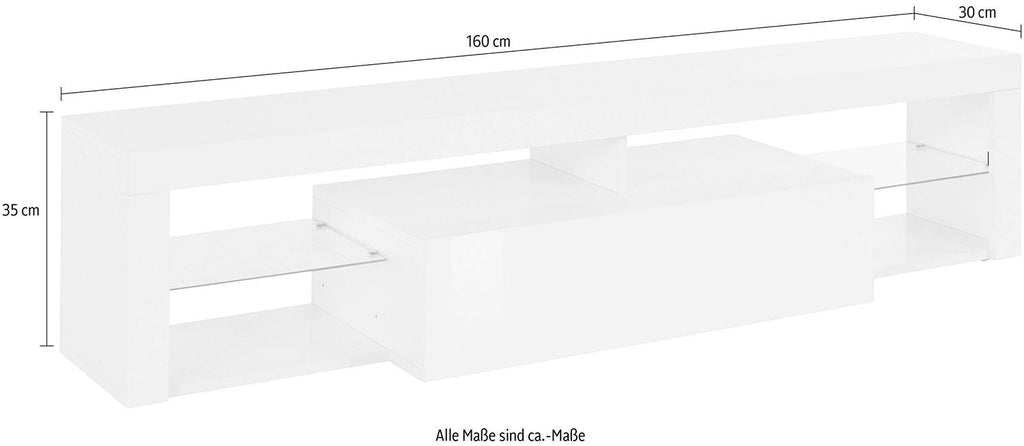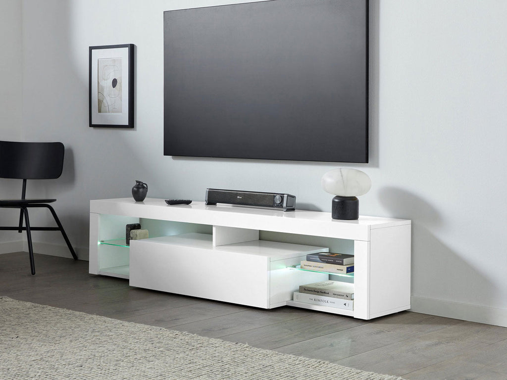 Mobile Tv 1 Anta a Ribalta e Ripiani a Giorno 160x40x35 cm Essential 1R Bianco Lucido
