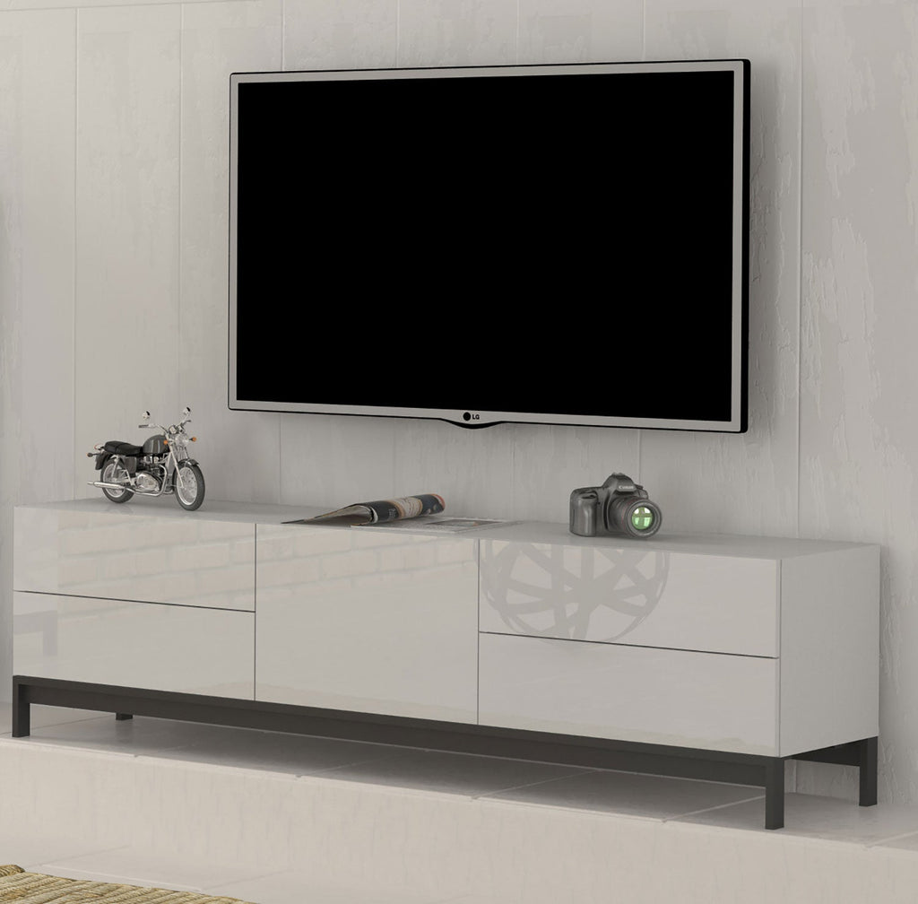 Mobile Tv 1 Anta e 4 Cassetti 170x40x35 cm Metis 1A 4C Bianco Lucido