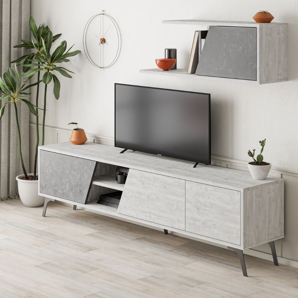 Mobile TV 1 Anta e Mensola 48x35,6x180 cm in MDF Fiona Bianco e Grigio