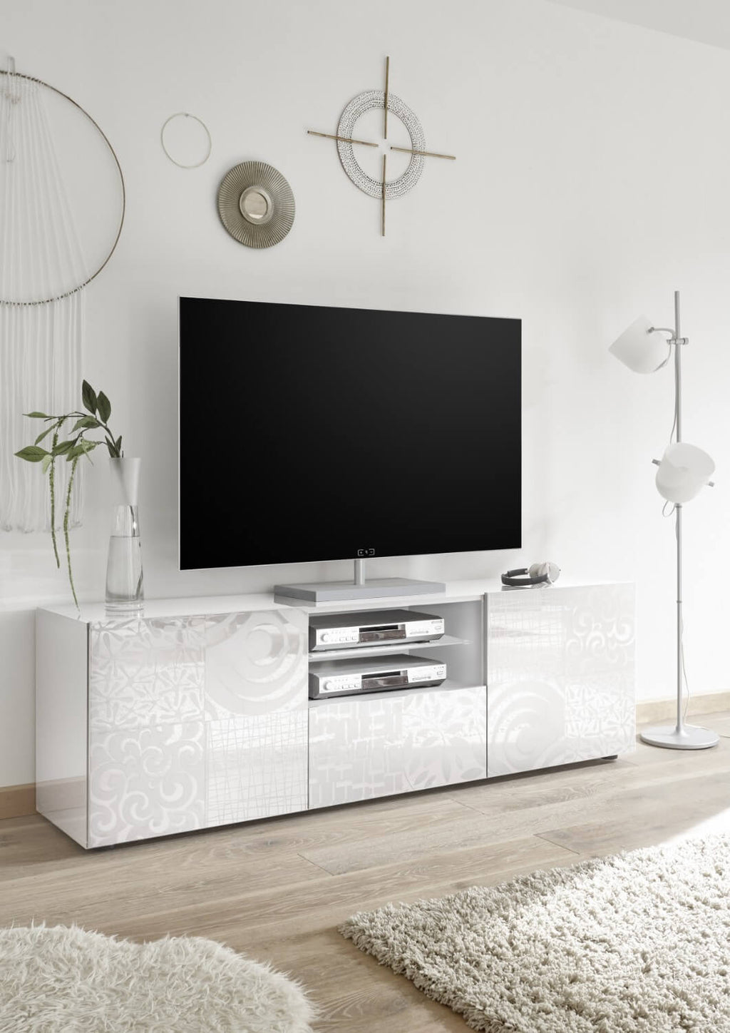 Meuble TV 1 Tiroir 2 Portes 5 Étagères en Mélamine 180x42x57cm TFT Blossom Blanc