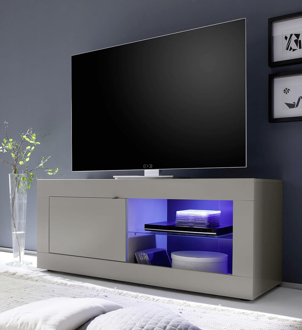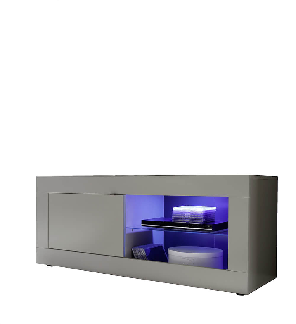 Meuble TV avec 1 porte et 1 niche avec étagère en verre 140x43x56cm TFT Basic Étain