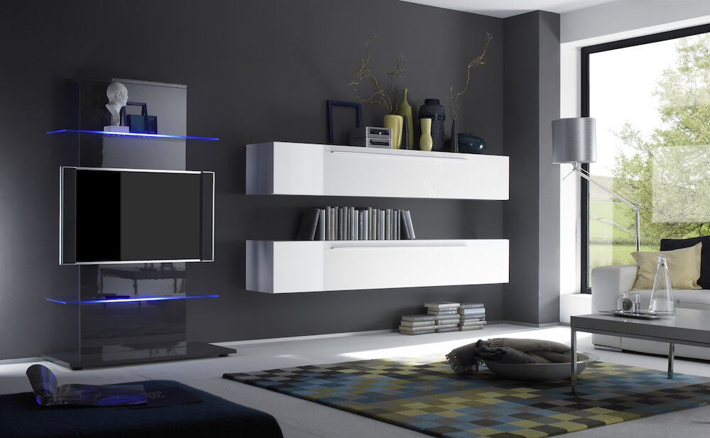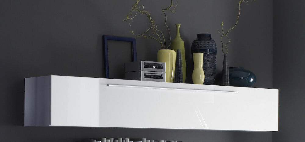 Meuble TV 1 Porte Rabattable 210x36x33,5cm TFT Primo Blanc Brillant