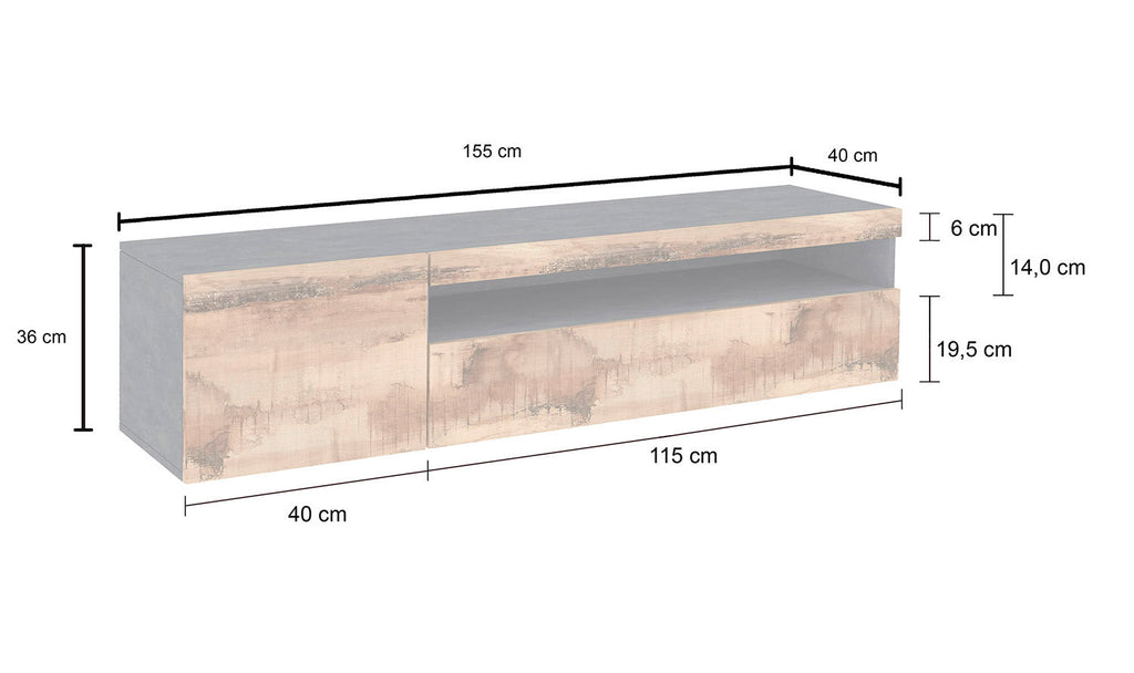 - Dimensioni del mobile montato: 154,9 x 40 x 36,5 (LxPxA)