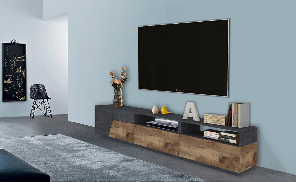Mobile TV 2 Ante 2 Cassetti 200,1x43x46 cm Alien Ardesia e Acero Pereira