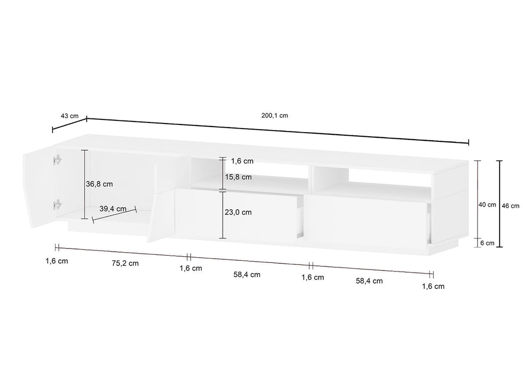 - Dimensioni del mobile montato: 200,1 x 43 x 46 (LxPxA)