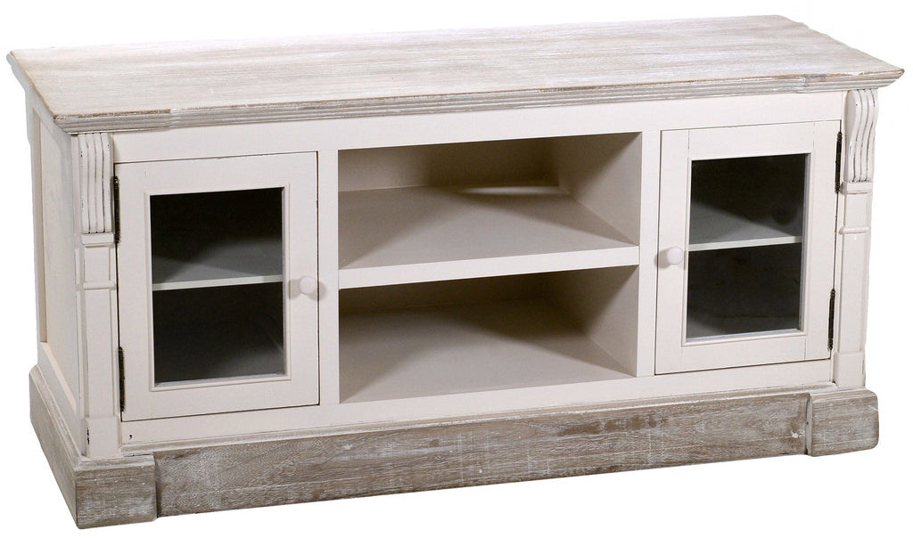 Meuble TV Provenza avec 2 portes vitrées et 2 étagères 114x44H54 cm