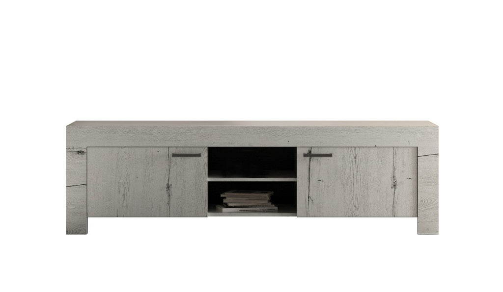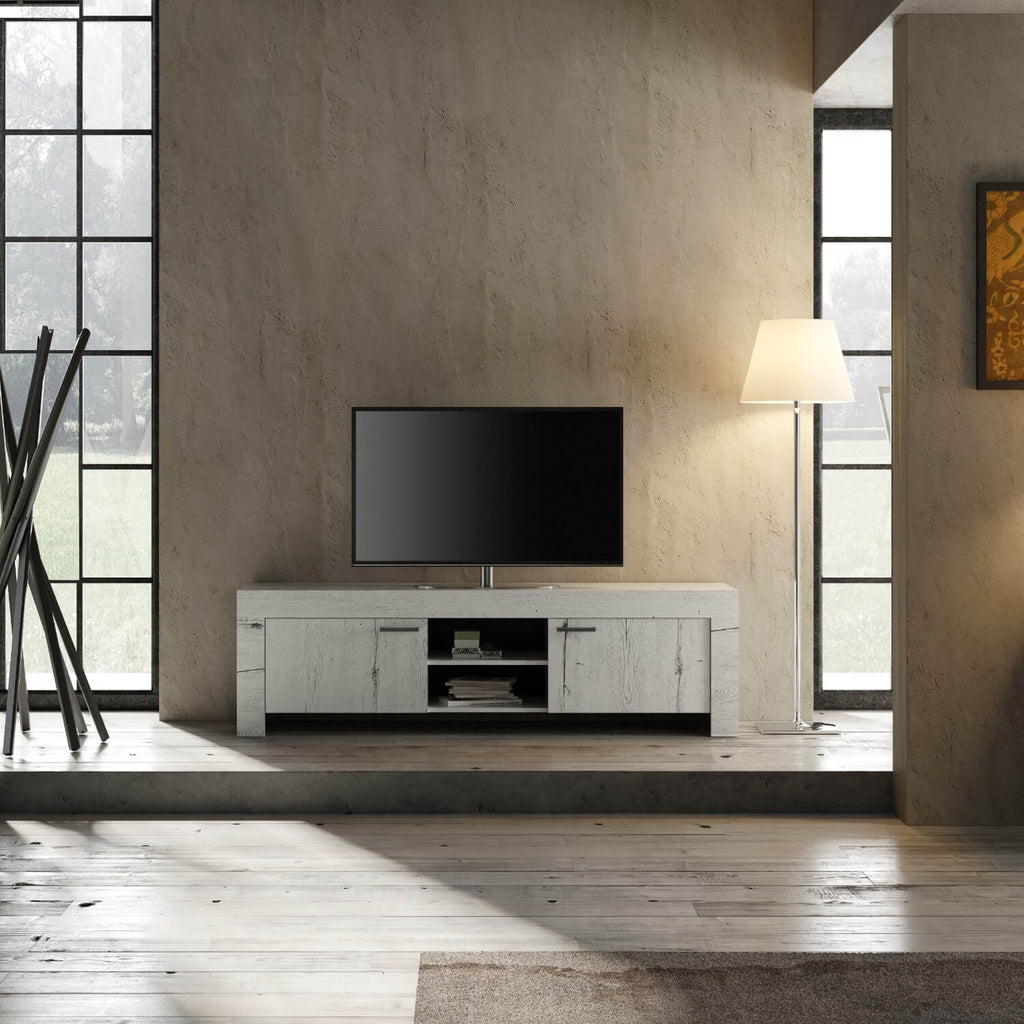 Meuble TV 2 portes 3 étagères en mélamine 180x43x53cm TFT Chêne Neige Neige