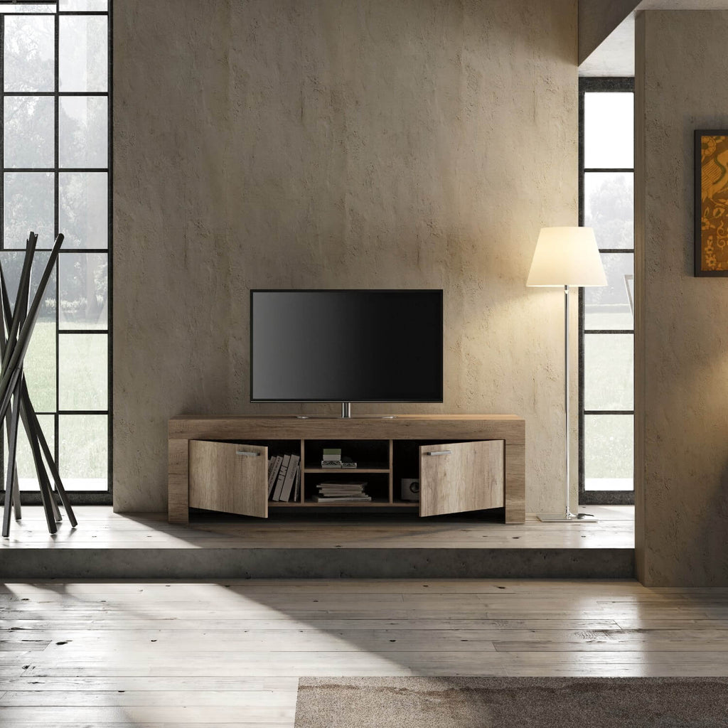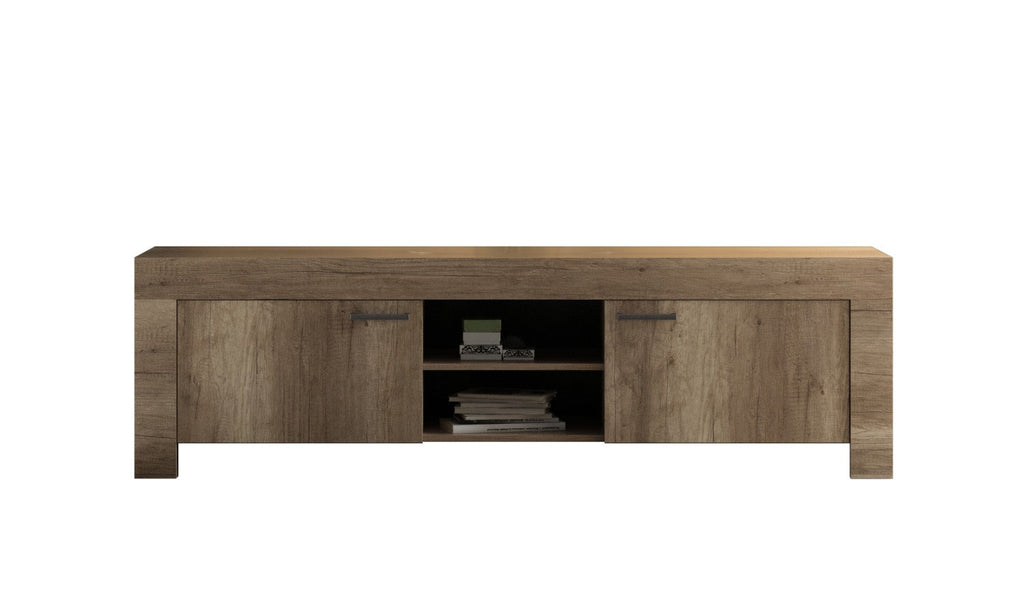 Meuble TV 2 portes 3 étagères en mélamine 180x43x53cm TFT Chêne Sax