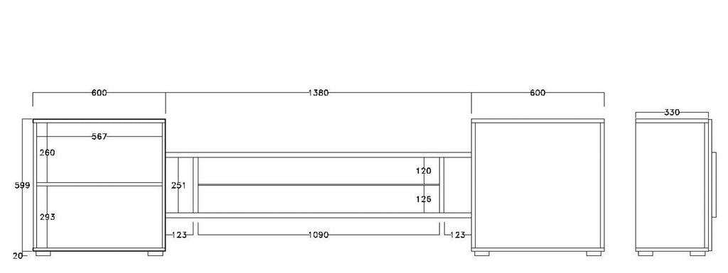 Meuble TV 2 Portes 5 Étagères en Mélamine 258x37x61cm TFT Build Blanc Noir