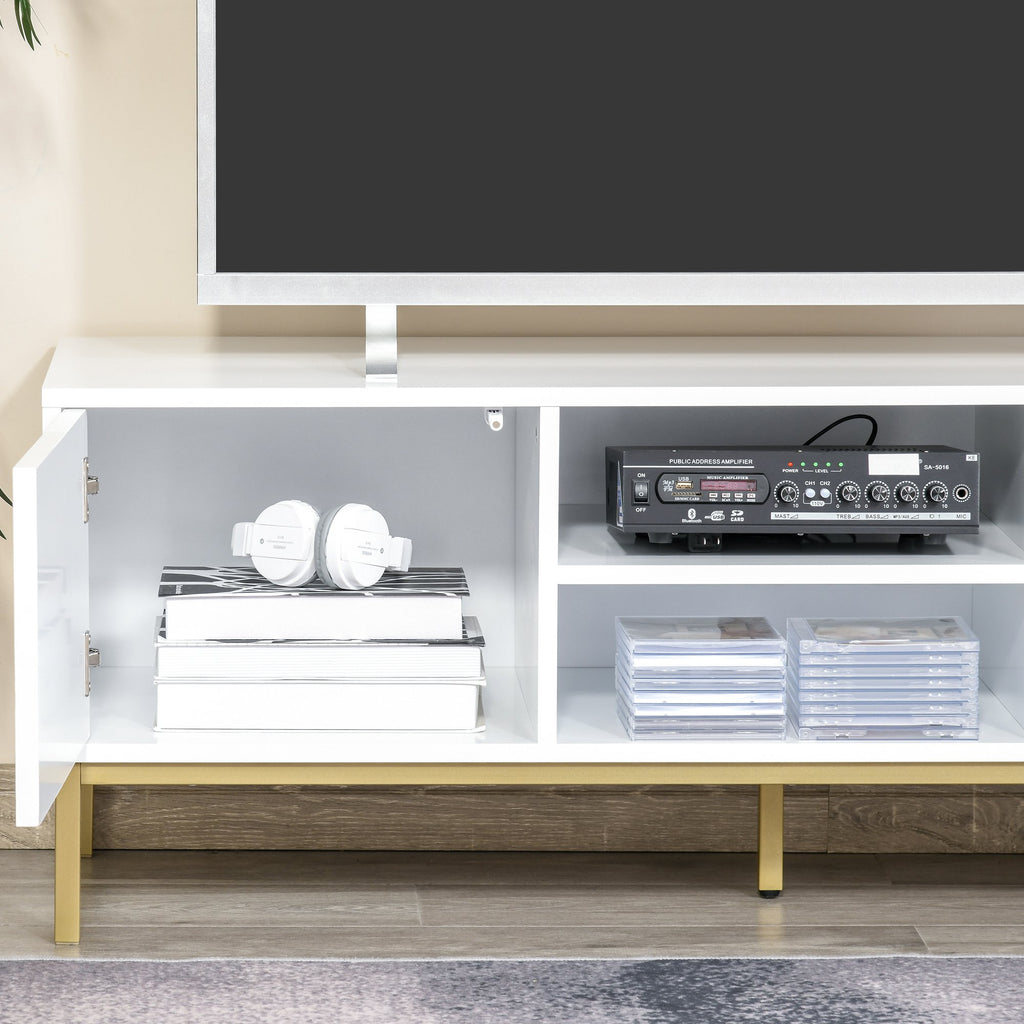 Meuble TV 2 Portes et Compartiment Central 120x40x44,6 cm en Bois Blanc et Doré