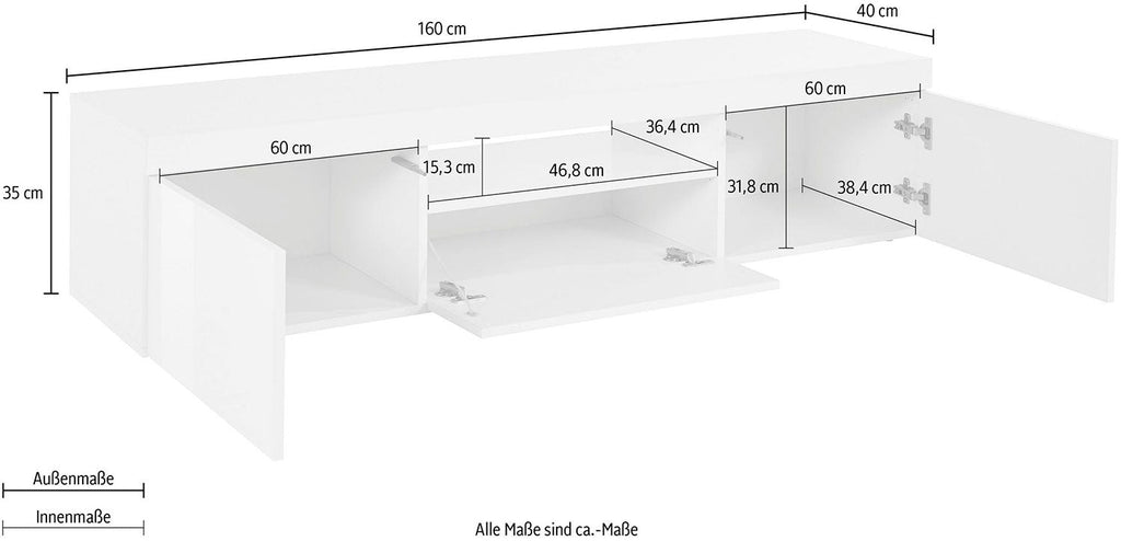 Mobile Tv 3 Ante e Ripiano a Giorno 160x40x35 cm Essential 2A 1R Bianco Lucido