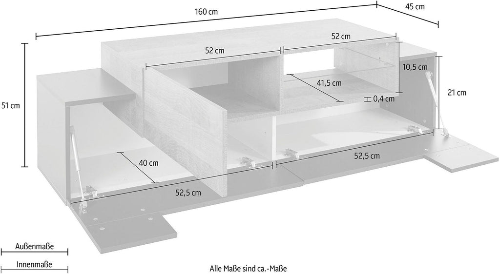 Mobile Tv 3 Ante e Ripiano a Giorno 160x45x51,5 cm Coro Grigio Antracite Opaco/Rovere Wotan