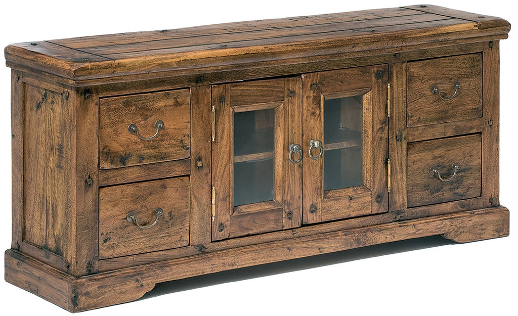 Meuble TV 4 Tiroirs 2 Portes en Bois Ancien Clair