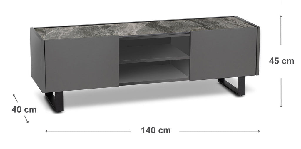 Mobile TV 40x140x45 cm in MDF e Ceramica Marmo Pegaso Grigrio