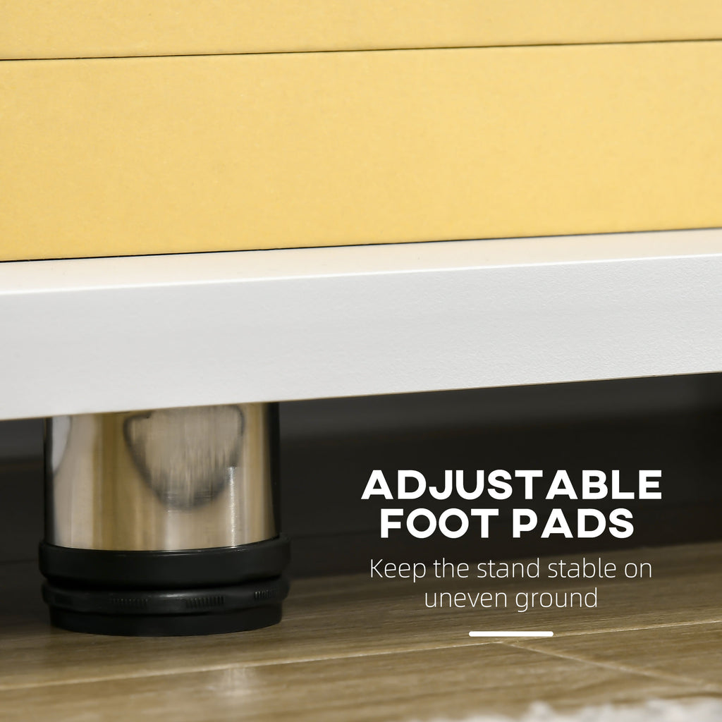 - SOLIDE ET STABLE : La structure en aggloméré assure la stabilité et une plus grande capacité de charge. Le meuble TV a des pieds réglables en bas, tandis que la hauteur peut être ajustée pour s'adapter aux surfaces inégales