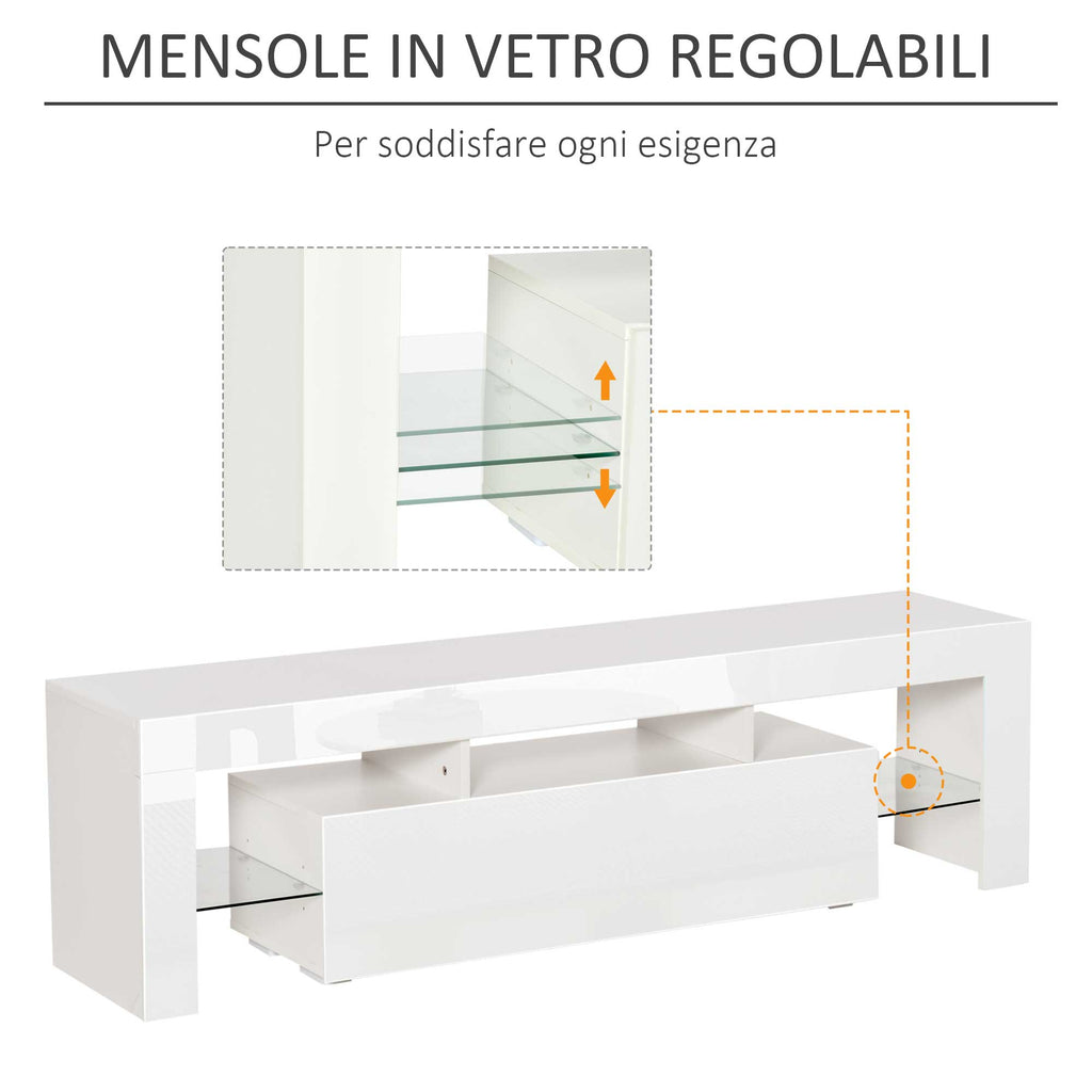 - FINITION BRILLANTE : Ce meuble TV moderne est en bois MDF laqué avec une peinture blanche brillante, et est le meuble idéal pour créer une ambiance raffinée dans le salon ou la salle à manger.
