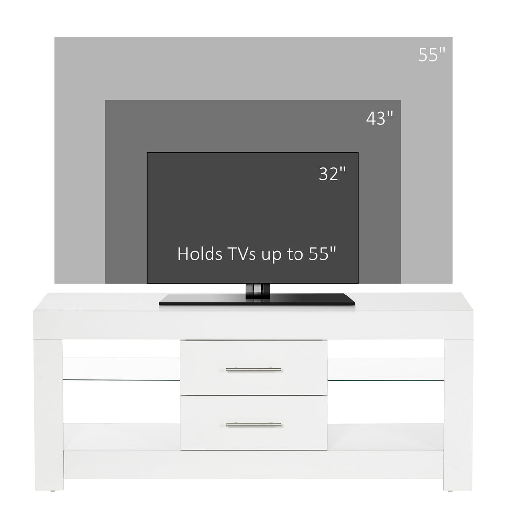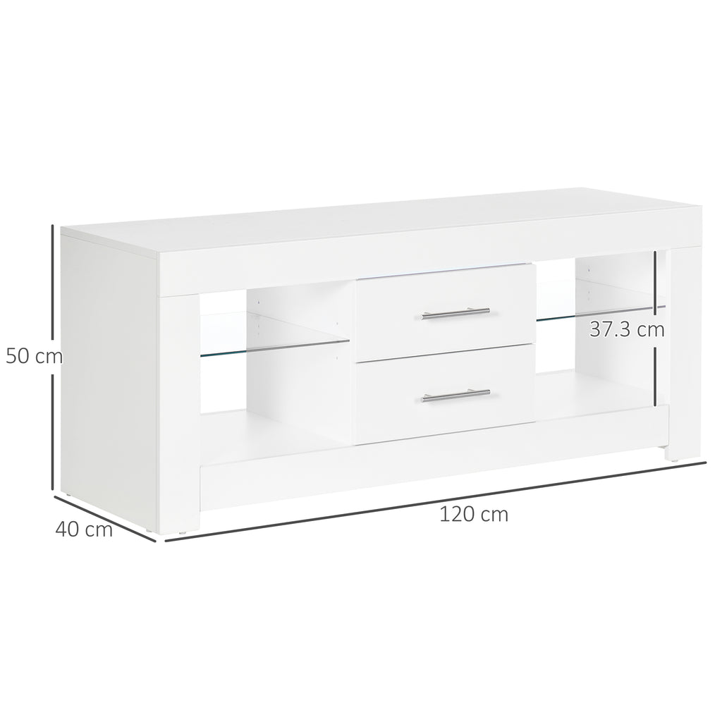 Mobile TV da 55” 120x40x50 cm con Luce LED in Legno e Vetro Bianco